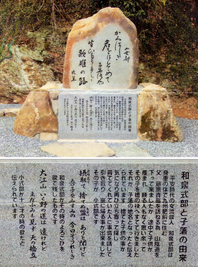 「子落し橋」の由来、和泉式部伝説の碑文で和泉式部が残したという